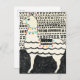 Partido Llama II de Chariklia Zarris. Apresenta uma lama com adornos coloridos contra um fundo geométrico e divertido.