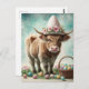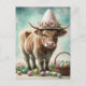 Todos os direitos reservados © Angelandspot AI gerou uma adorável vaca marrom Highland em uma Páscoa rico que se posiciona junto a uma cesta de ovos de Páscoa.
