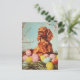 Celebre a Páscoa com o elegante e espirituoso Setter Irlandês neste cartão postal estilo vintage. Apresentando o belo cão revestido de cor vermelha rodeado por ovos pastel de Páscoa, flores de primavera florescentes e detalhes festivos de férias, esta design é perfeita para amantes, colecionadores e fãs de arte nostálgica de férias. Uma saudável saudação de compartilhar alegria da Páscoa.