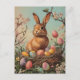 Celebre a alegria da Páscoa com este cartão postal, estilo vintage, com um belo coelho da Páscoa rodeado de ovos lindamente pintados. Com o seu charmoso e nostálgico design, este cartão-postal evoca o calor e a tradição das celebrações da primavera. Perfeito para colecionadores, cartões de natal, ou como um encantador guardião, este design capta o espírito eterno da Páscoa.