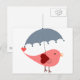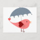 Cartão Postal Pássaro branco-branco-rosado segurando guarda-chuv