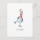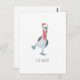 Cartaz com um pássaro de chapéu de Natal e cachecol, é uma ave de pés azuis das Ilhas Galápagos, que não gosta de ficar fria