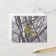 Cena de inverno de um pequeno pássaro amarelo sentado nos ramos nus do inverno de uma árvore. O topo da cabeça é preto, as asas são castanhas e brancas, a maioria das penas corporais são amarelas. A cor contrasta bem com a cinza e os membros da ramificação da cinza com pontas vermelhas.