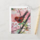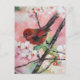 Cartão Postal Pássaro petroleiro vermelho na flor da cereja