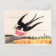 Um pássaro, um Swallow ou Martin, voando em uma cena rústica, rural, carregando um galho com flores de Coração Sangrento. Pelo artista checo Vaclav Fiala. Esta imagem foi adquirida a partir de um telegrama checo de 1947. Václav Fiala (1896-1980) - pintor checo, artista gráfico, ilustrador e pesquisador. Aluno do renomado pintor checo Max Švabinský da Academia de Belas-Artes em Praga, Fiala experimentou os estilos populares de arte do período. Desde a década de 1930, Fiala favoreceu o realismo. O principal objeto de suas obras foi a paisagem cultural. Em sua visão artística, seguiu os clássicos estudos etnográficos de Josef Manes. Obras de Václav Fiala retratam a vida e a cultura das pessoas comuns, não afetadas pelos efeitos negativos da civilização. Suas paisagens são retratadas por moradias rurais, figuras de pessoas rurais e grupos de gado.