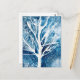 Pintor azul e aquarela de inverno de uma árvore branca com fundo de neve. Arte original com tema de Natal. Natal azul e branco.