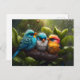 Cartão Postal Pássaros Coloridos Fluffy Adoráveis na chuva