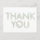 Este cartão postal moderno de agradecimento apresenta um gráfico floral da palavra Obrigado com um pássaro pousado dentro do O. Ele pode ser personalizado com uma mensagem e nomes. A paleta de cores é rosa, lavanda e verde. O texto do verso pode ser personalizado ou removido para notas manuscritas. Coordena com a Coleção de Casamento Love Birds & Letters.