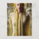 Uma mulher linda com um vestido feito de macarrão e cabelo de massa