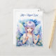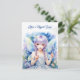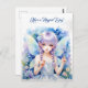 Uma fada bonito com cabelos trançados por lavanda e asas iridescentes segura uma varinha de borboleta, cercada por flores e bolhas.