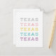 Que bom, você quer dizer mais que duas vezes! Este design pastel mostra a palavra "Texas" cinco vezes em cinco cores. O design geralmente funciona bem em fundos claros ou escuros, portanto, sinta-se à vontade para se adaptar aos seus gostos. Perfeito para residentes no Texas e ex-pais que desejavam ainda morar aqui. Produtos correspondentes disponíveis.