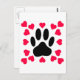 Cartão Postal Pata Negra De Cão Impressa Com Formas Cardíacas