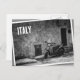 Cartaz fotográfico de um patinete em frente a um muro antigo numa cidade de Itália, a preto e branco, com uma borda branca, e o texto "Itália". A imagem é um pouco rotacionada para criar a ilusão de ela se soltar.