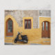 Um patinete preto contra uma parede amarela na cidade de Rhodes, Grécia