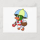 Cartão Postal Pato na Chuva com Guarda-Chuva