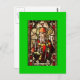 Imagem de vidro manchada de Saint Patrick com fundo verde no cartão postal.