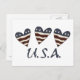Cartão postal patriótico com três corações com estrelas e listras americanas com a inscrição U.S.A. Misture e combine com outros cartões postais patrióticos disponíveis na galeria.