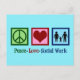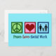 O Trabalho Social Peace Love está presente. Um presente de Natal bonito para assistentes sociais, com uma família de mãos dadas ao lado de um sinal de paz e coração. Um bom design para serviços sociais.