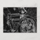 Motocicleta 1 - Detalhe da roda dianteira e do tanque de uma bicicleta de corrida em preto e branco. © Alan Harman Fotografia 2012. Todos os direitos reservados. www.alanharmanphotography.com 210518 cartão postal