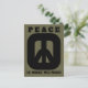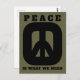 Cartão postal verde militar com sinal de paz preto e "PAZ É O QUE PRECISAMOS" e Y-NOT-ME. A longo prazo, a justiça e a igualdade são o que traz a paz. Parece que quanto mais bilionários há, menos igualdade há. Isso é apenas uma coincidência?