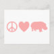 Cartão Postal Peace Love e Hippos