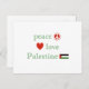 Cartão Postal Peace Love Palestine Heart and Palestine Flag