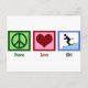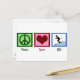 Um sinal verde de paz, um coração vermelho e um esquiador descendo em bonito encostas azuis.