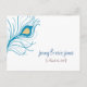 Cartão Postal Peacock Feather Wedding Obrigado Cartão-postal
