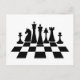 Cartão Postal Peças de xadrez pretas em um tabuleiro de xadrez