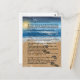Uma pintura de praia com pegadas e pegadas poéticas na areia.