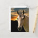 Cabeça de cavalo em frente a um cartão postal fotográfico por pôr do sol
