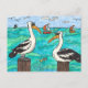 Uma pintura pelicana original criada com lápis de cor de água e tinta no papel. Cartões postais de excelente para amantes pelicanos e com artigos de papelaria correspondentes. com