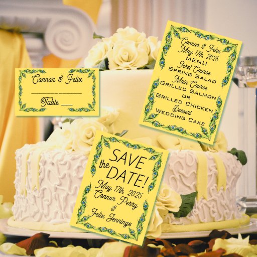 Cartão Postal Penas Amarelo de Peacock Salvar a Data