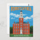 Celebrate the heritage of the Keystone State with this Pennsylvania postcard featuring a classic red-brick historic building beneath a bright blue sky. Perfect for travelers, history lovers, and collectors, this design captures the timeless charm and proud spirit of Pennsylvania. A great souvenir, gift, or collectible for anyone who loves American landmarks and vintage travel art.