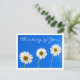 Deixe os entes queridos saberem o quão especiais eles são com este doce cartão postal de margarida azul e branca pensando em você.