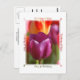 Cartão postal "Pensando em Você" com uma tulipa roxa e uma tulipa laranja e amarela, por celeste@khoncepts.com