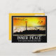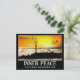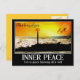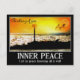 Uma imagem de uma pessoa sentada no final de algumas rochas sob um belo pôr do sol com gaivotas voando sobre uma lua de cheio. Ditos impressos no cartão postal "INNER PEACE", eu sento em paz sabendo que está tudo bem.