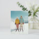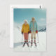 Imagem retrô engraçada de um casal idoso na neve na esqui durante suas férias de inverno