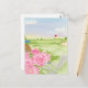 Este cartão postal apresenta uma cena de campo de golfe pintada à mão com um saco de golfe estilo vintage repleto de peônias rosa suave e tacos clássicos. Uma mistura graciosa de beleza floral e charme do golfe, perfeita para qualquer ocasião.