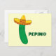 A melão é sempre feliz. você pode vê-lo no seu sorriso. Nem mesmo o bigode de Pepino pode cobrir seu sorriso grande. Pepino ama seu grande sombrero amarelo. Um pepino feliz, Pepino, atinge uma pose no seu sambero picante. Os olhos pretos de Pepino e o sorriso coberto de bigode fazem dele o mais bonito legume de ambos os lados da fronteira.