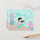 Pequena sereia doce debaixo do mar com conchas marinhas, peixes, anêmona, recife de coral e obrigado de estrelas de peixe que você postcard.