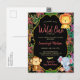 A selva é cortada, com animais da selva em folhas tropicais pretas, douradas, verdes e rosa cor-de-água rosa, que têm uma borda bonita de leão, macaco e elefante. Um tema perfeito para ter uma menina. Modelos criados para você usar, incluindo o endereço de retorno na parte traseira.