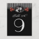 Cartões de Número de Mesa Pequenos Esqueletos de Casamento de Halloween Preto e Branco com Floral Vermelho