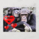 Dois chimpanzés junto com corações vermelhos e dizeres; perdoe-me, eu te amo, desculpa.