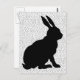 Este cartão-postal é branco com bolinhas pretas e o perfil lateral de um coelho coelho negro sentado.