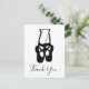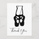 Obrigado postal com uma ilustração a preto e branco de um balé dançarino pernas inferiores e balés escorregadios, de pé sobre os dedos, em ponto.