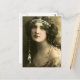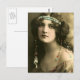 Fotografia vítrea de uma jovem bonito com cabelo comprido. Ela tem longas miçangas penduradas sobre os ombros e pérolas no cabelo e sobre a testa