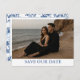 Procurando uma maneira elegante de anunciar o seu casamento? Este cartão-postal personalizável de "salve o data" permite que você faça o upload da sua foto de noivado favorita, mantendo o design sofisticado e moderno. Com uma disposição de tipos elegante que combina com roupas escuras e cenários de praia, o verso apresenta um padrão azul de chinoiserie atemporal para um acabamento clássico. Perfeito para casamentos na costa, casais modernos ou qualquer pessoa que queira um toque refinado e pessoal.