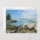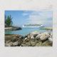 Navio de cruzeiro no CocoCay - ancorado com segurança ao largo, longe das rochas e recifes, um navio de cruzeiro da classe liberdade repousa na ilha tropical privada da linha de cruzeiro de Coco Cay, nas Bahamas.