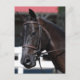 Tackeado cavalo de baía doce com um cavaleiro.